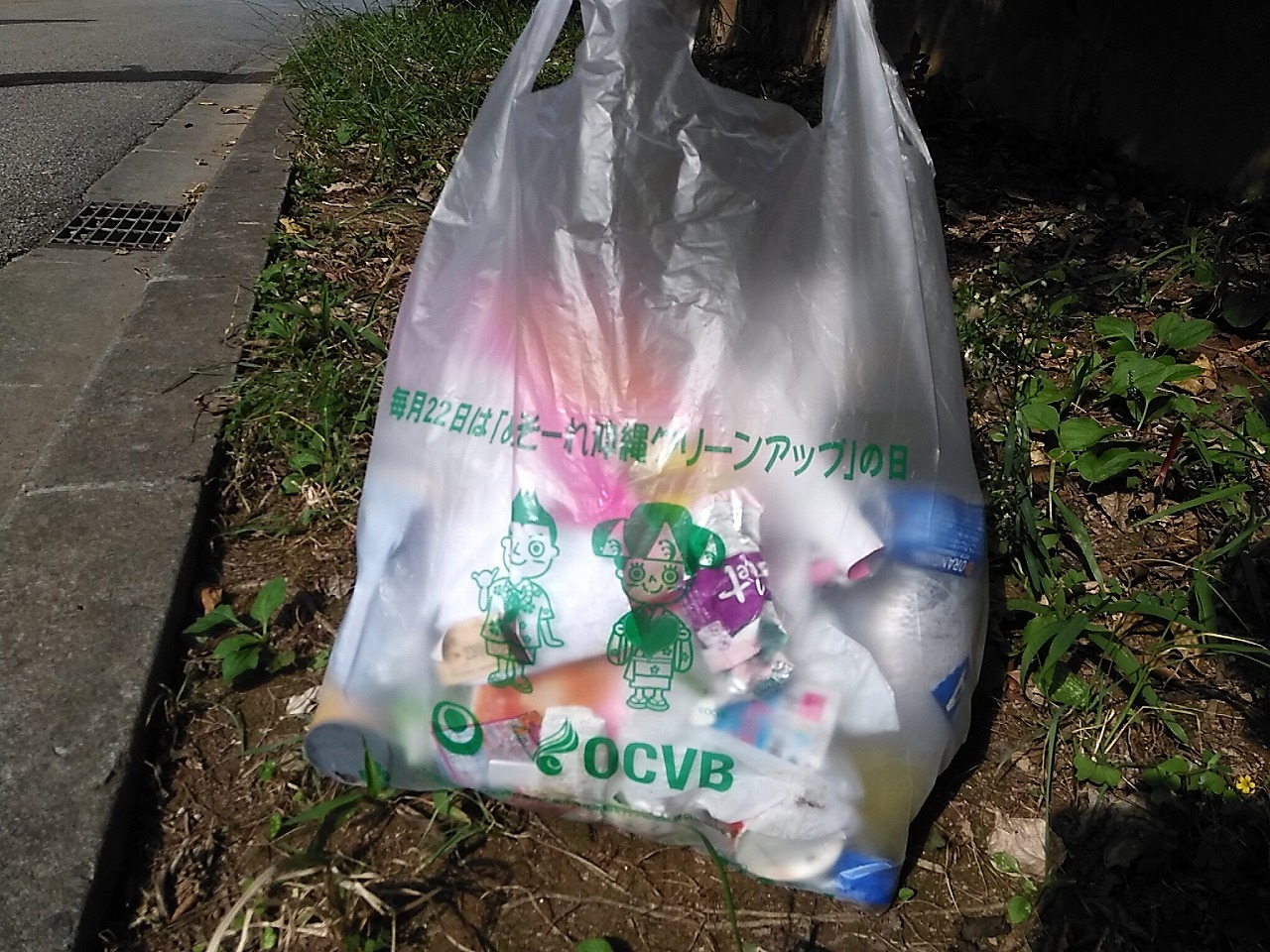 後半の25km付近から集め始めたゴミはご覧のとおり。ちょっと少ないかな。足が痛くてゴミを拾う動作が苦痛だったので少な目です。